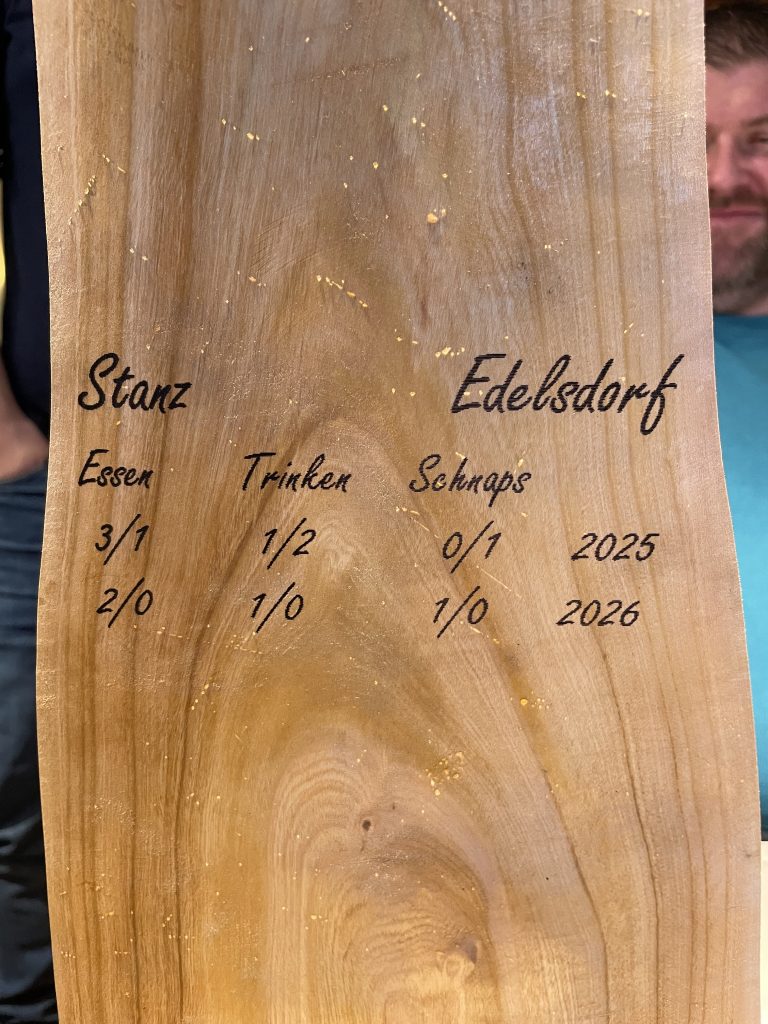 Am Sonntag, 25.01.2026 fand das traditionelle Knödelschießen der Freiwilligen Feuerwehr Edelsdorf gegen die Freiwillige Feuerwehr Stanz statt. Bei leider regnerischem Wetter trafen sich die Kameradinnen und Kameraden der Wehren auf der Eisbahn des Gasthauses Almwirt in der Stanz. Bei einem sehr anstrengenden Bewerb ging der harte Vergleichskampf diesmal an die FF Stanz.