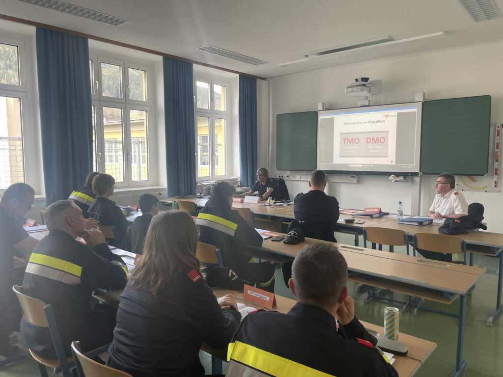7 Ausbildnerinnen und Ausbildner haben 37 Teilnehmerinnen und Teilnehmern aus dem Bezirk Mürzzuschlag die Grundkenntnisse des Digital- Funk- und Alarmwesen näher gebracht. Es wurden die Gebiete Sprechfunkordnung, Gerätekunde, Alarmierung und praktische Funkgespräche vorgetragen und beübt.