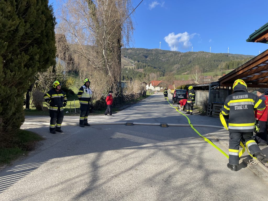 Es wurde ein Küchenbrand im Gasthaus Webergut angenommen. Die Brandbekämpfung und Wasserbezug vom Hydrant wurde von HLF2 Stanz durchgeführt, das LFA Stanz stellte einen Wasserbezug mit TS im Stanzbach her und das MTF Stanz wurde als Einsatzleitung eingerichtet.