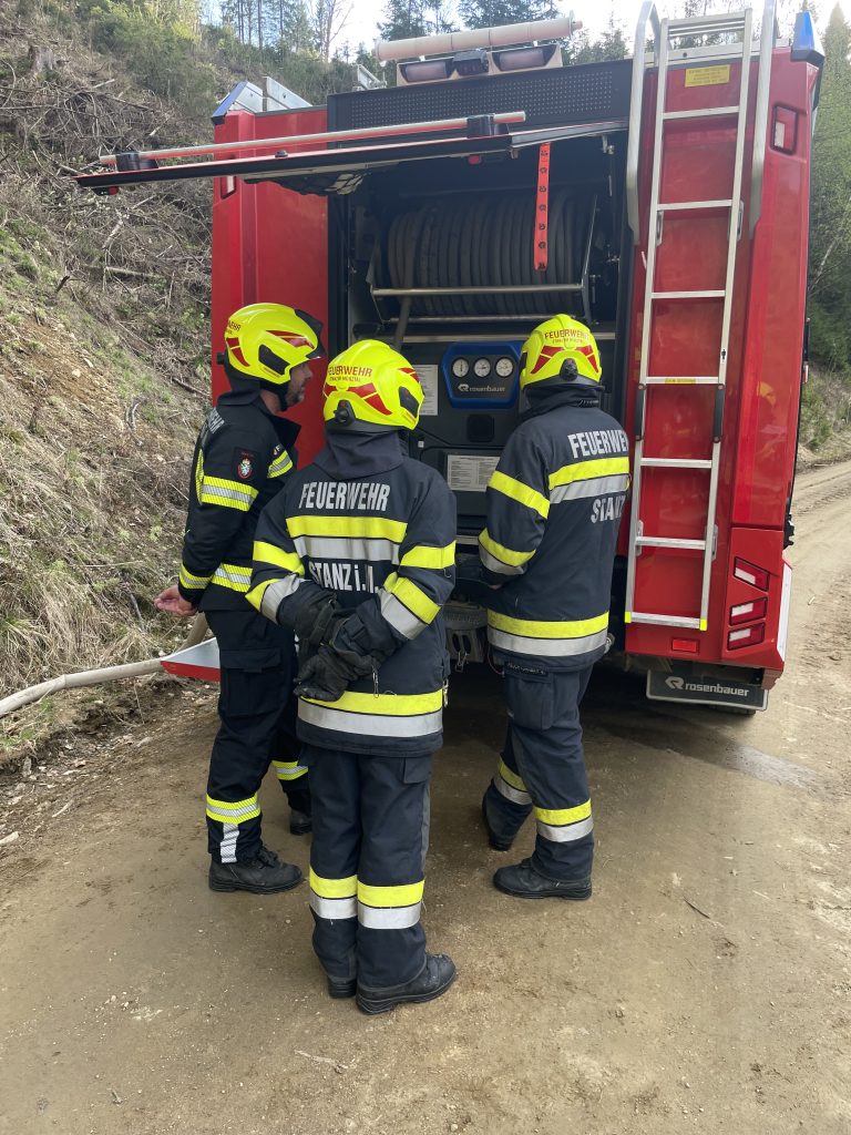 Die FF Stanz rückte mit HLF 2 und 9 Mann zum Einsatzort aus und speisten den TLF Jasnitz, stellten 5 Mann zur Brandbekämpfung und Personenrettung ab. Weiters füllten wir das HLF 2 beim Hydrant der FF Jasnitz und speisten schließend den TLF 4000 der FF Kindberg Stadt. Die Übungsbesprechung wurde am Einsatzort durchgeführt.